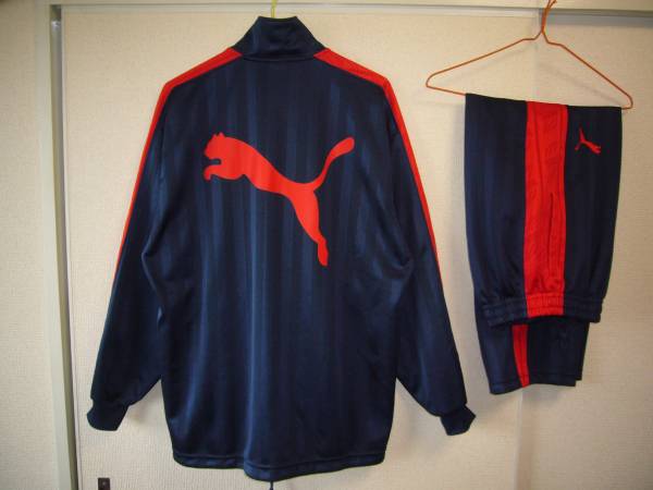 - プーマ シャドーストライプジャージ上下 黒×赤S~M パンツSサイズ