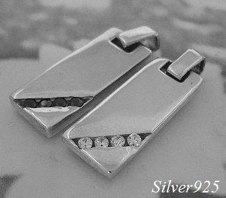 - シルバー925銀のジルコニア付 鏡面プレート ペア ペンダント/2個set