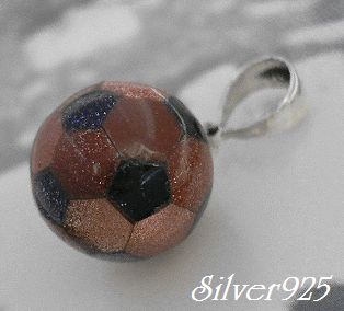 > シルバー925銀の紫金石[ブルーゴールドストーン]&茶金石[ゴールドストーン]貼りサッカーボール ペンダントSサイズ