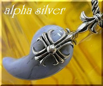 - シルバー925銀の天然石 勾玉ブルーレース 十字架リバーシブル ペンダント