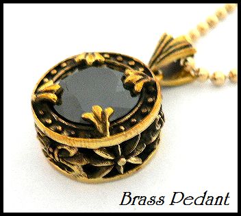- 真鍮製Brass百合留めカットオニキス付ラウンド ブラス ペンダント/Brassアクセ