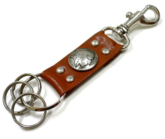 - 牛革インディアン ボタン付き 3連レザー キーホルダー/ブラウン