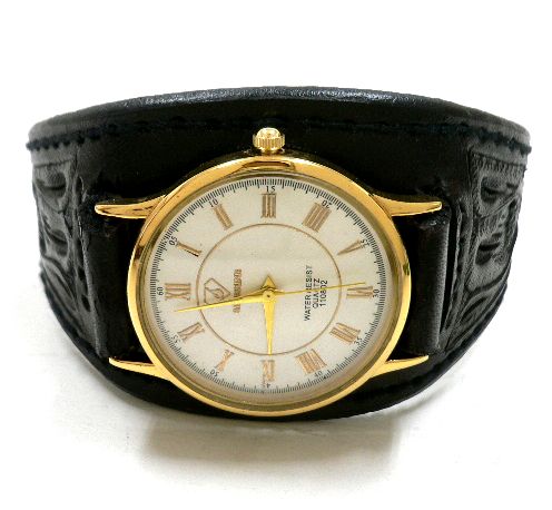 - 牛革カービング アラベスク レザー ブレス ウォッチ黒/コンチョ無タイプ