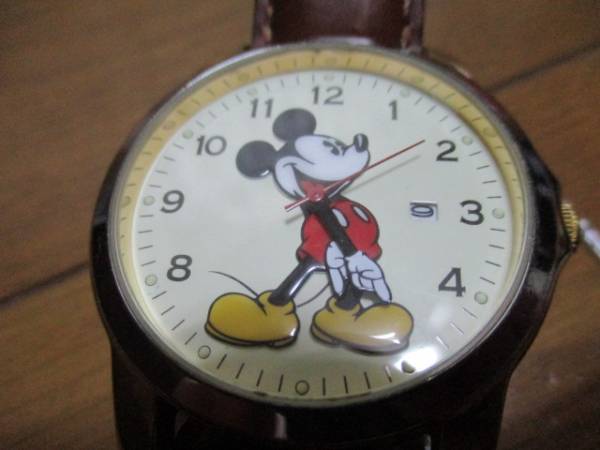 > ミッキーマウス アンティークな革ベルト アナログ 腕時計 ディズニー Disney GENUINE LEATHER 電池切れ 現状販売