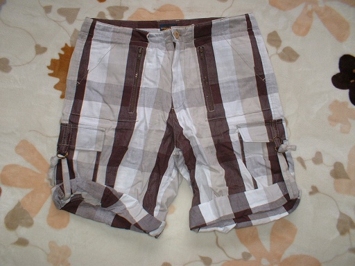 > A⑤ 即買☆EST 1830 WOOLRICH ウールリッチ 白茶ベージュ格子柄ロールアップワークハーフパンツカーゴポケットベルト通し付き