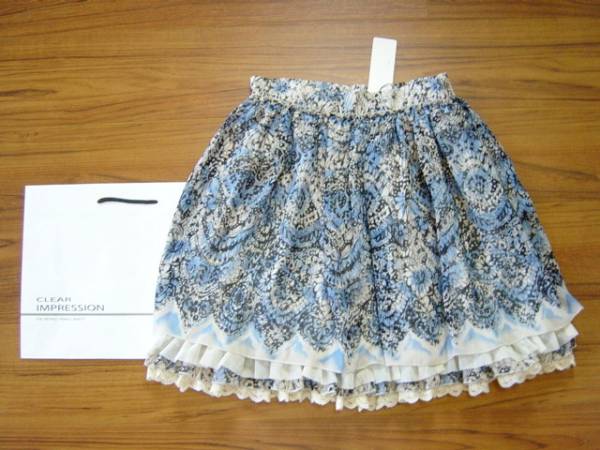 > ◆新品セール◆CLEAR IMPRESSIONクリアインプレッション◆裾 刺繍レース 花柄フレアー スカート 水色ライトブルー◆青