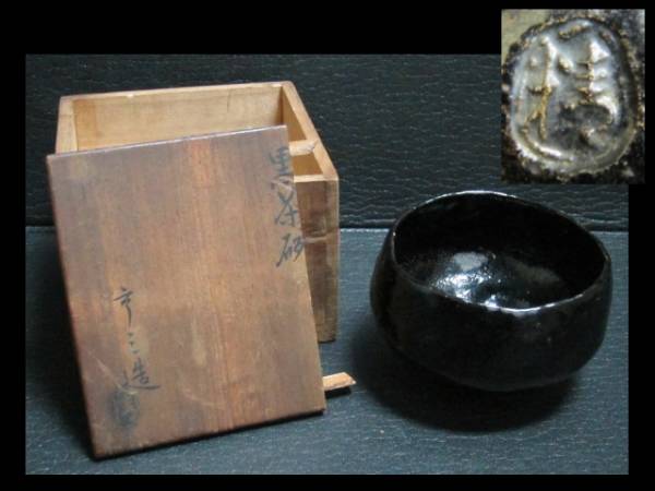 - 茶碗 抹茶茶碗 黒茶碗 清 陶印 亨三造