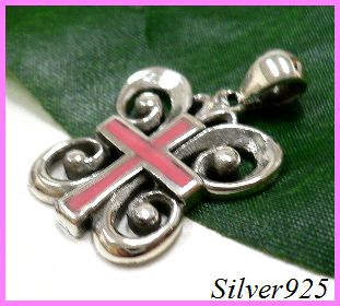 - シルバー925銀のピンク コーラル クロス ちょうちょ ペンダント/ALL50%OFF