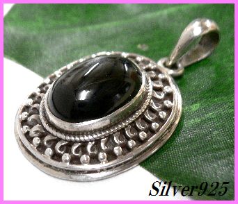 - シルバー925銀の天然石ブラックスター ペンダントtypeB