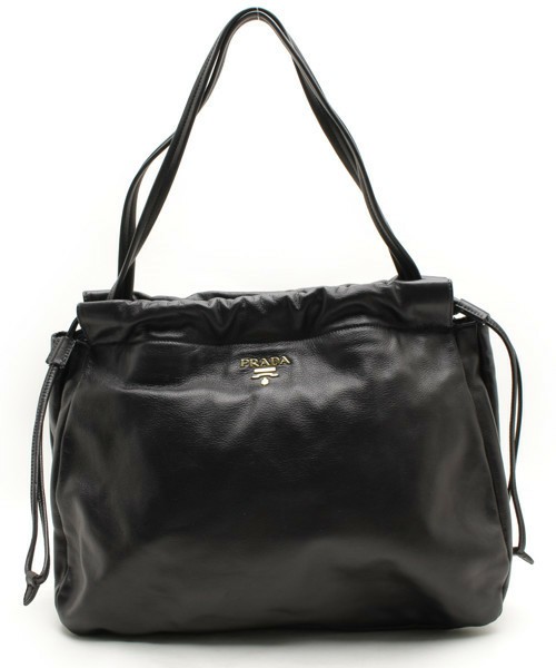 - PRADA プラダ ◇ ソフト カーフ レザー セミ ショルダー トート ハンド バッグ ◇ 牛 皮 革 カウ 巾着 蛇腹