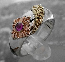 > シルバー925銀のレッドジルコニア付クロス アラベスク フローラル リング/15号.17号.19号.21号より/S&A silver