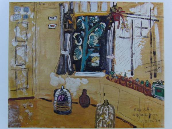- 長谷川 三郎、室内風景、希少画集画、新品額装付、mai