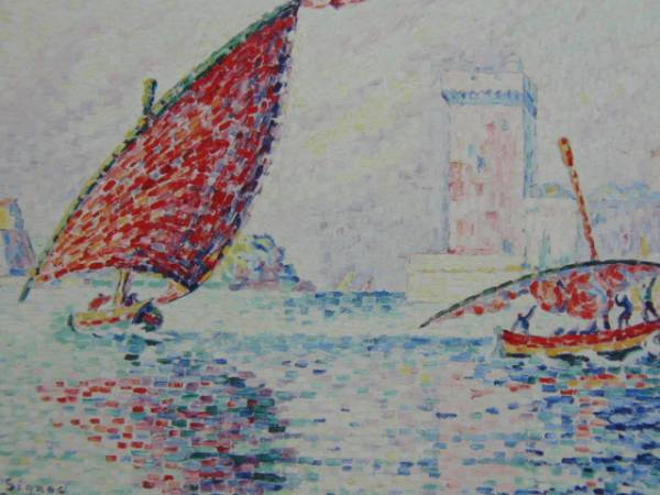- ポール・シニャック、マルセイユ・釣舟、希少画集画、新品額装付 、salt