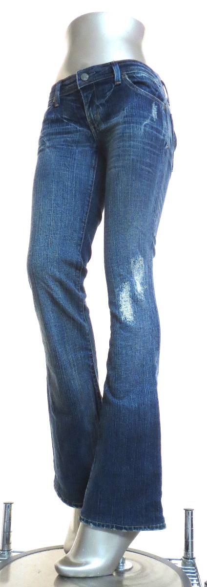 > 二点落札で送料無料! 5D27 575 DENIM コットン インディゴ ブルー ダメージ デニム パンツ レディース 綿 25 ジーンズ ボトムス
