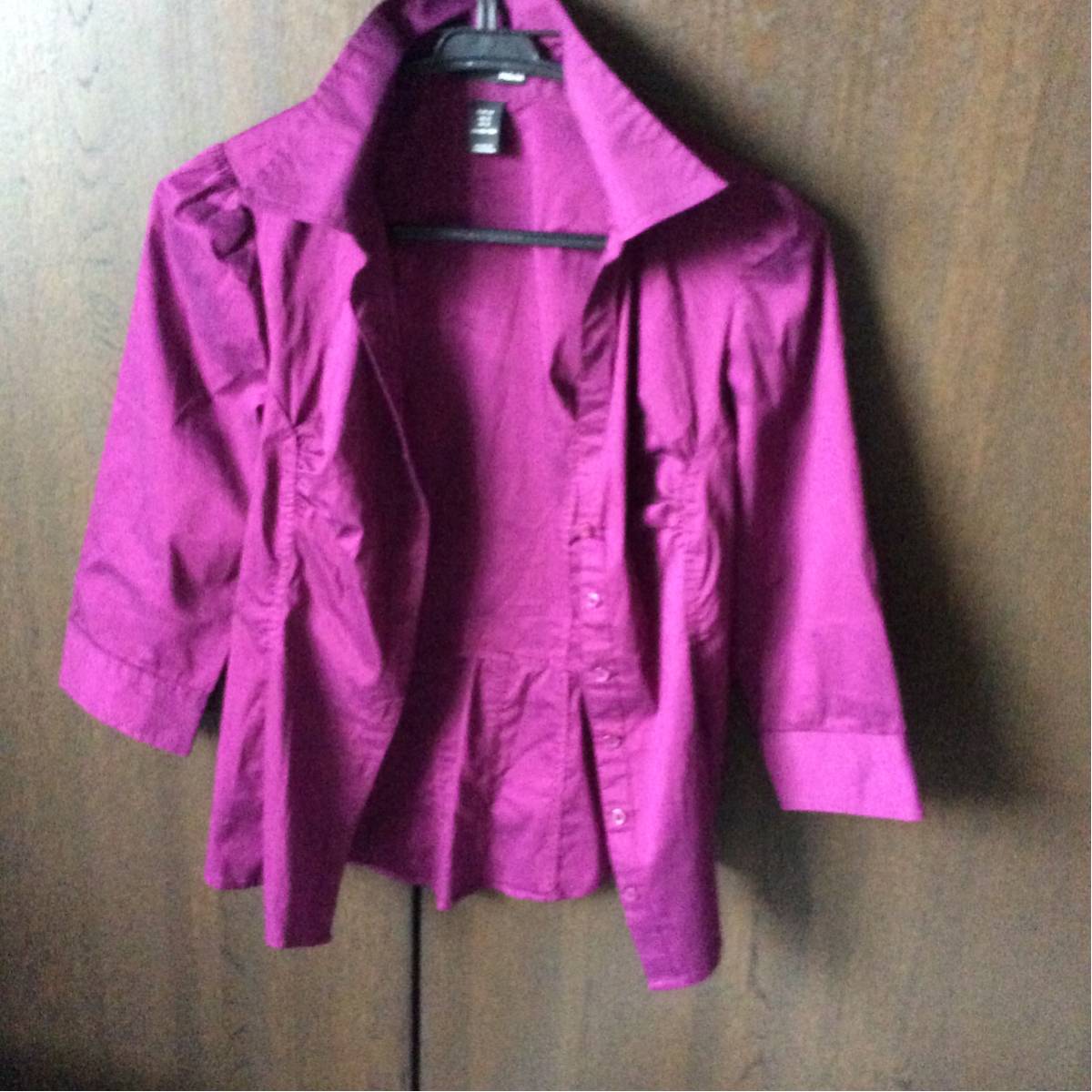 - H&M♪新品同様♪定形外210円♪超美品♪S程度♪暗めワインカラー♪素敵デザイン♪八分袖♪ストレッチ