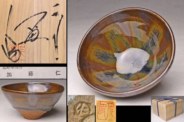 - 加藤仁 ★ 天目ぐい呑 ★ 共箱共布 ★ 市無形文化財 ★ 検 日根野作三 美濃 ★