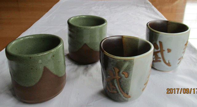 ☆サイズ・・写真左の湯飲み茶わん。口の直径9cm・・高さ10cm
