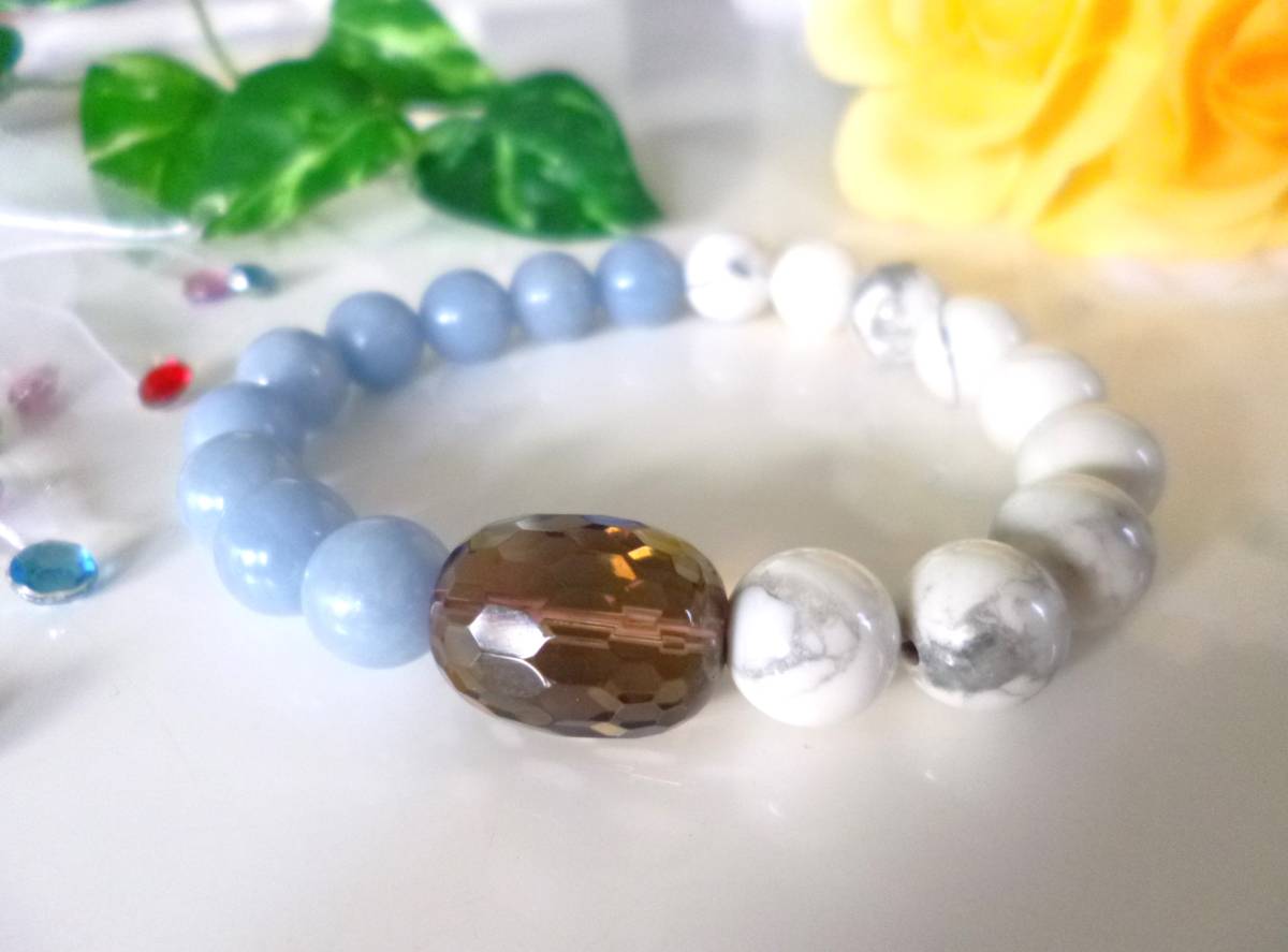 - ★疲労回復★波動吸収★邪気払い★スモーキークォーツ★ポジティブ思考☆ハウライト★心のやすらぎ☆エンジェライト☆10mm☆17cm☆