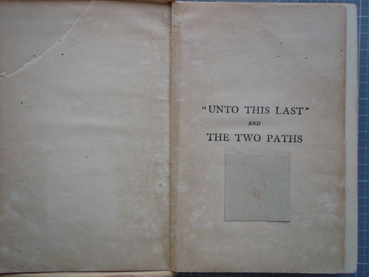 - UNTO THIS. LAST AND THE TWO PATHS JOHN RUSKIN