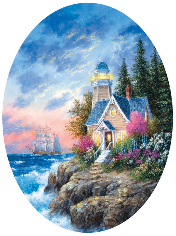- (48345) 600ピース 楕円形のパズル米国輸入●SUN●エンジェル・ポワント:海辺の灯台と帆船 Angel Point