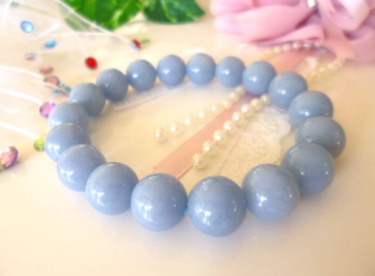 - ☆天使の微笑(ほほえみ)☆心のやすらぎ☆綺麗なパステルブルー☆高品質AAA☆エンジェライト☆ ☆大珠12mm☆ ☆17cm ☆