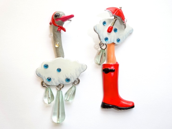 > ● フランス N2 エヌドゥ レネレイド ピアス ダチョウ 鳥 新品 Les Nereides 長靴 ラインストーン 雲 曇り 雨 赤 パリ 人気ブランド