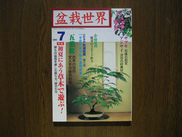 - ∞ 盆栽世界 2000年7月号 №368 新企画出版局、刊 【小品盆栽スピード作り・五葉松古木の改作・アジサイを楽しむ、他】