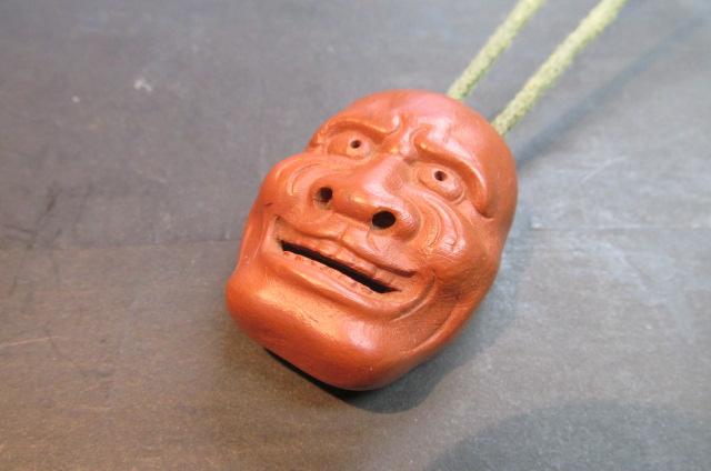 - 常滑焼 石仙 朱泥 面根付 「鬼神系」ペンダント