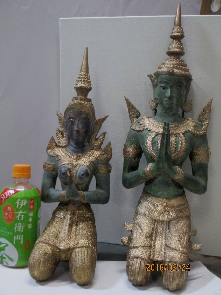 - No112 タイ エメラルド仏 特大ペア 1対 大46.5cm小39cm ブロンズ 密教 チベット アジア 仏教 インテリア アンティーク 銅像