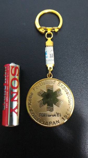 - 未使用 神戸 ポートピア81 メダル キーホルダー お土産 昭和 レトロ 観光 3UI