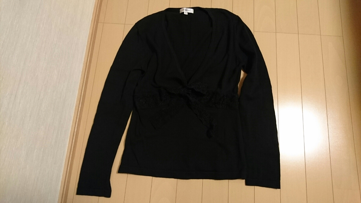> ミッシェルクラン MK KLEINサイズ40大きめサイズ薄手レースニットカットソー美品黒 肩幅41脇下92丈57センチ