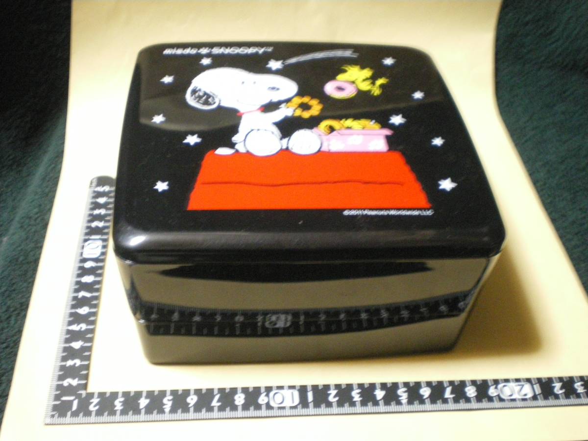 - 珍品フリマ] スヌーピー 合成樹脂製 重箱 2段重 ミスタードーナッツ「misdo SNOOPY」箱なし 新品同様 説明書つき 16cm×16cm [送料無料]