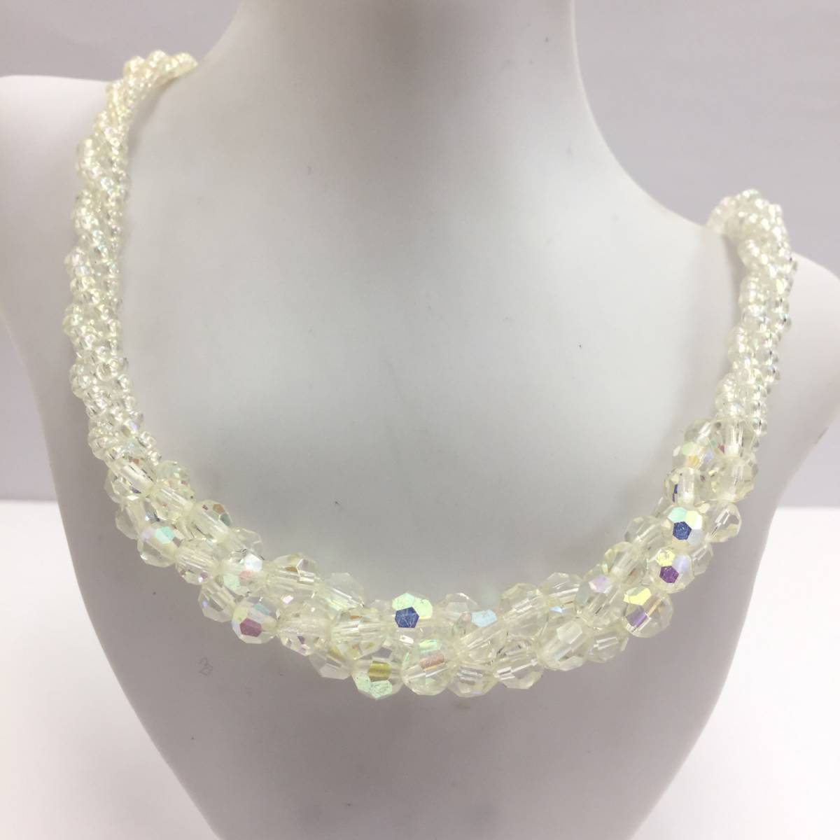- 【ネックレス】約41+5cm オーロラビーズをふんだんに使用したキラキラアクセサリー ホワイト 華やか