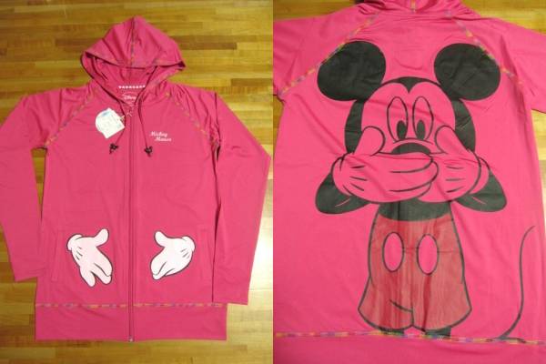 > *送料無料*新品*M*ミッキーマウス*ラッシュガード*ピンク*UPF50+*吸汗速乾*Disney*バックプリント*