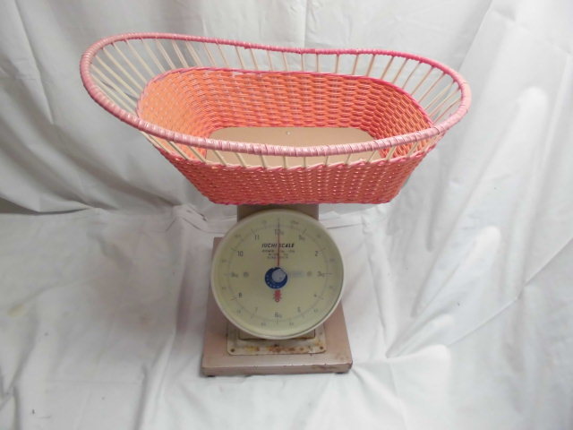 - レトロな バスケット付き 上皿はかり 12キロまで