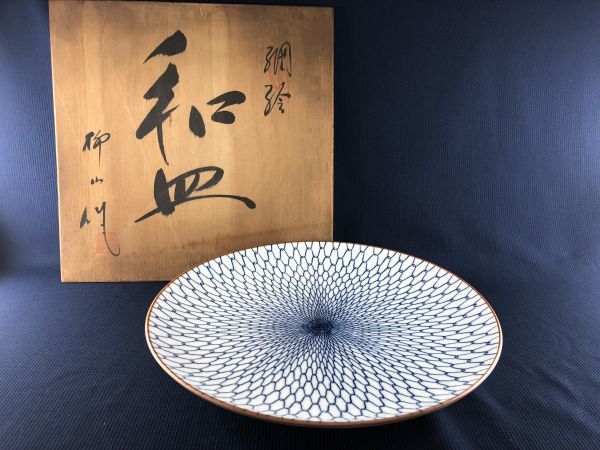 - 未使用品・逸品★美術有田焼 柳山作 和皿 31㎝ 共箱あり管理1807 U-11