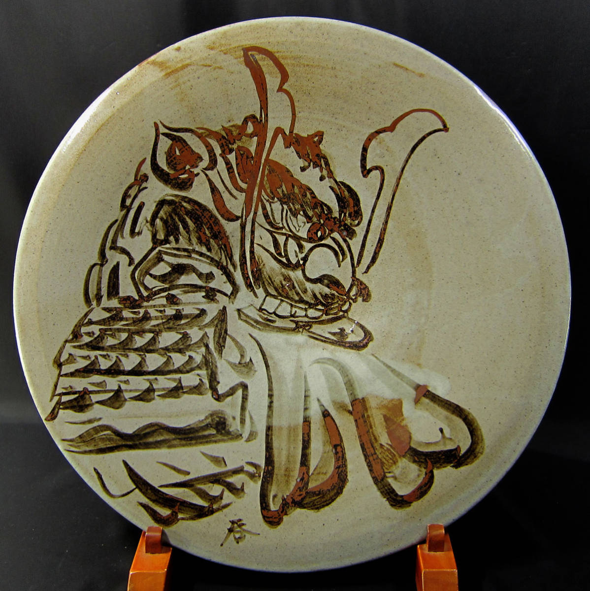 - 佐賀 呑楽陶房 小杉昌興 武将図 大皿 高8×径46cm 真作保証