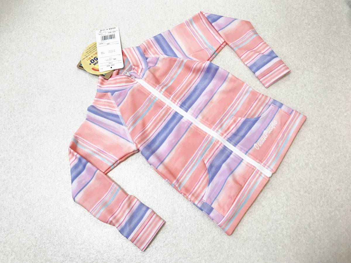 - 子供水着100:オーシャンパシフィック【OP】KID'SハイネックUV*長袖ラッシュガード/水着素材*ファスナージャケット:ピンク 定価4300円