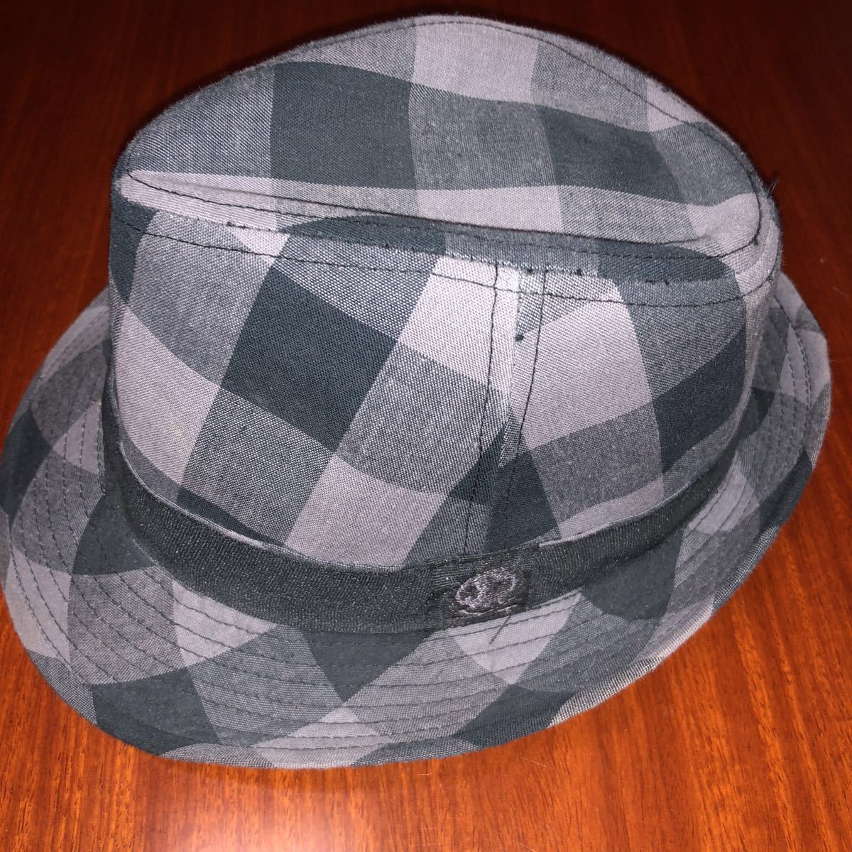 - 子ども用 帽子 スローハット ブロックチェック 黒×グレー 中古 サイズ52㎝