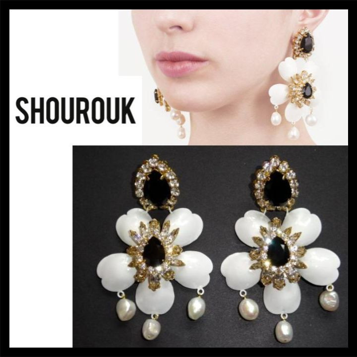- ● フランス パリ Shourouk シュルーク ビジュー ピアス ダリア 花 スワロフスキー 白 クリスタル パール 新品 セレブ 豪華 パーティー