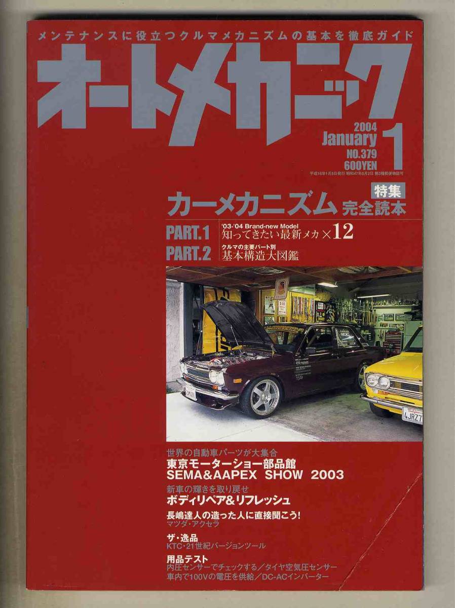 書名/記事: ’04.1 オートメカニック/カーメカニズム完全読本 - 知っておきたい最新メカ,基本構造大図鑑、ボディリペア&リフレッシュ、DC-ACインバーター - 車内で100Vの電圧を供給、…