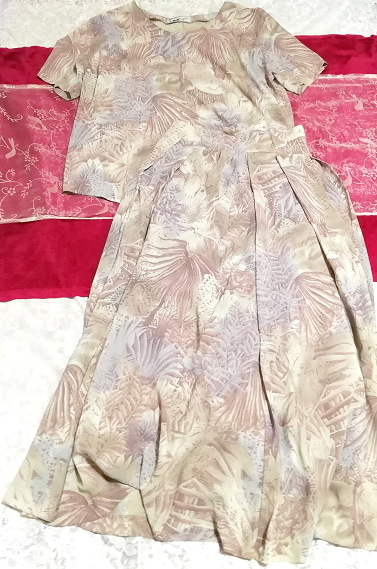 > 亜麻色ベージュ葉柄シフォンツーピーストップスとロングスカート2点セット Flax color beige petiole chiffon tops long skirt 2 piece set