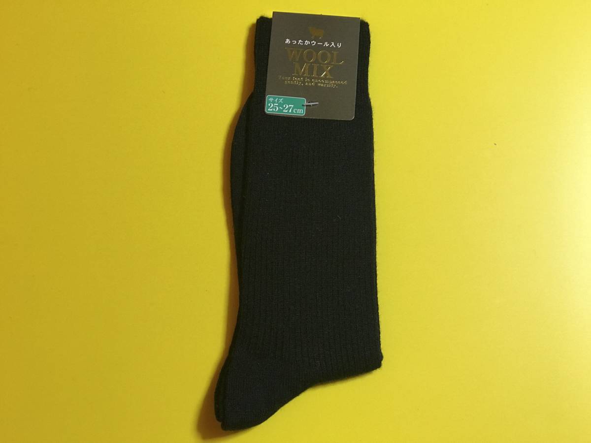 - 新品 あったかウール入り WOOL MIX 靴下 濃紺 ソックス 25~27㎝ メンズ 紳士 冠婚葬祭
