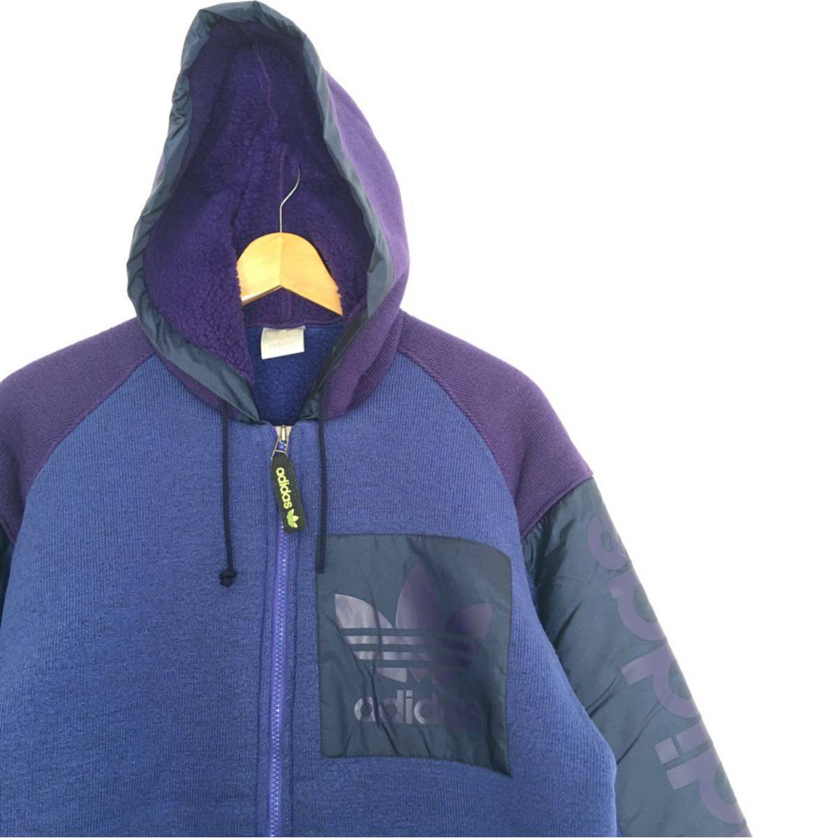 > ビンテージ 90s【adidas】ナイロン フリース パーカー オールド アディダス レトロ古着 日本製 西ドイツ 00s Y2K デサント フード ジャージ