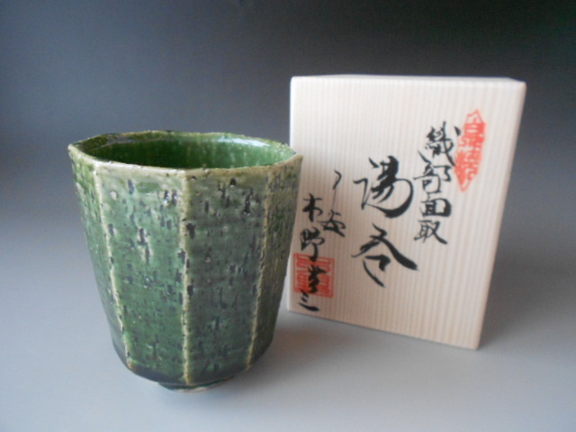 - 茶器! 木村宜正・木野窯 織部面取お湯呑 木箱 新品 煎茶 汲出 京焼 ギフト