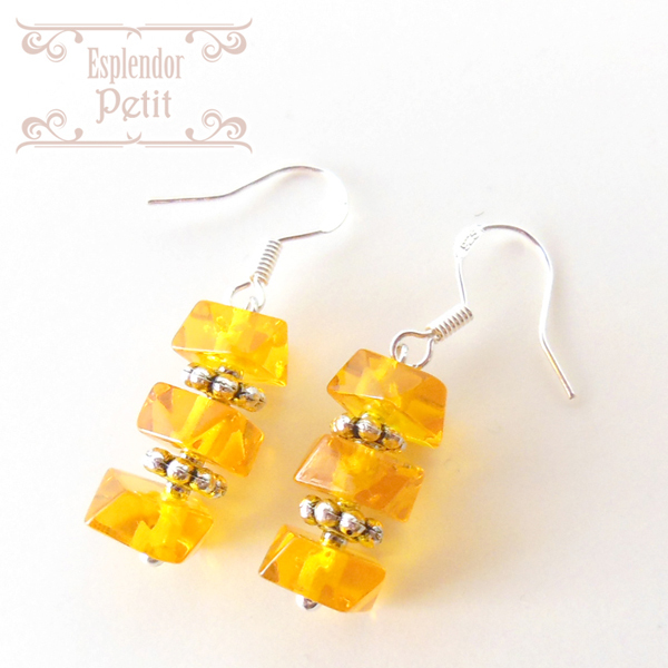 - はちみつのような優しい色合い♪バルト海沿岸産・琥珀 アンバー シルバーピアス