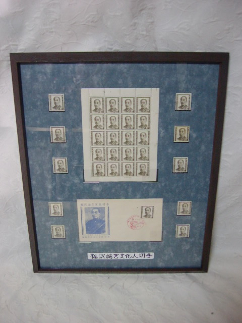 > 額入り・インテリア アート !! 状態良好 未使用品 「福沢 諭吉」 文化人切手 & 初日カード / 特別出品 ( 8 )