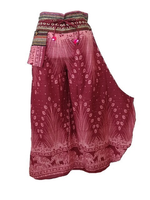 - 【新品】アジアン ガウチョパンツ★レッド/赤 B【FREE】サルエルパンツ アラジンパンツ スカンツ スカーチョ ジョガー ダンス 男性 女性