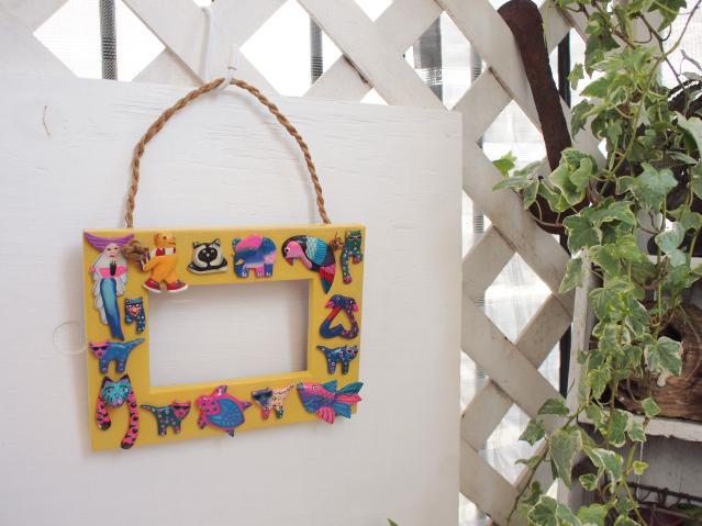 - ビンテージバリ島面白木彫り*猫・動物がいっぱい壁掛けフレーム*ポップF☆インテリアディスプレイ