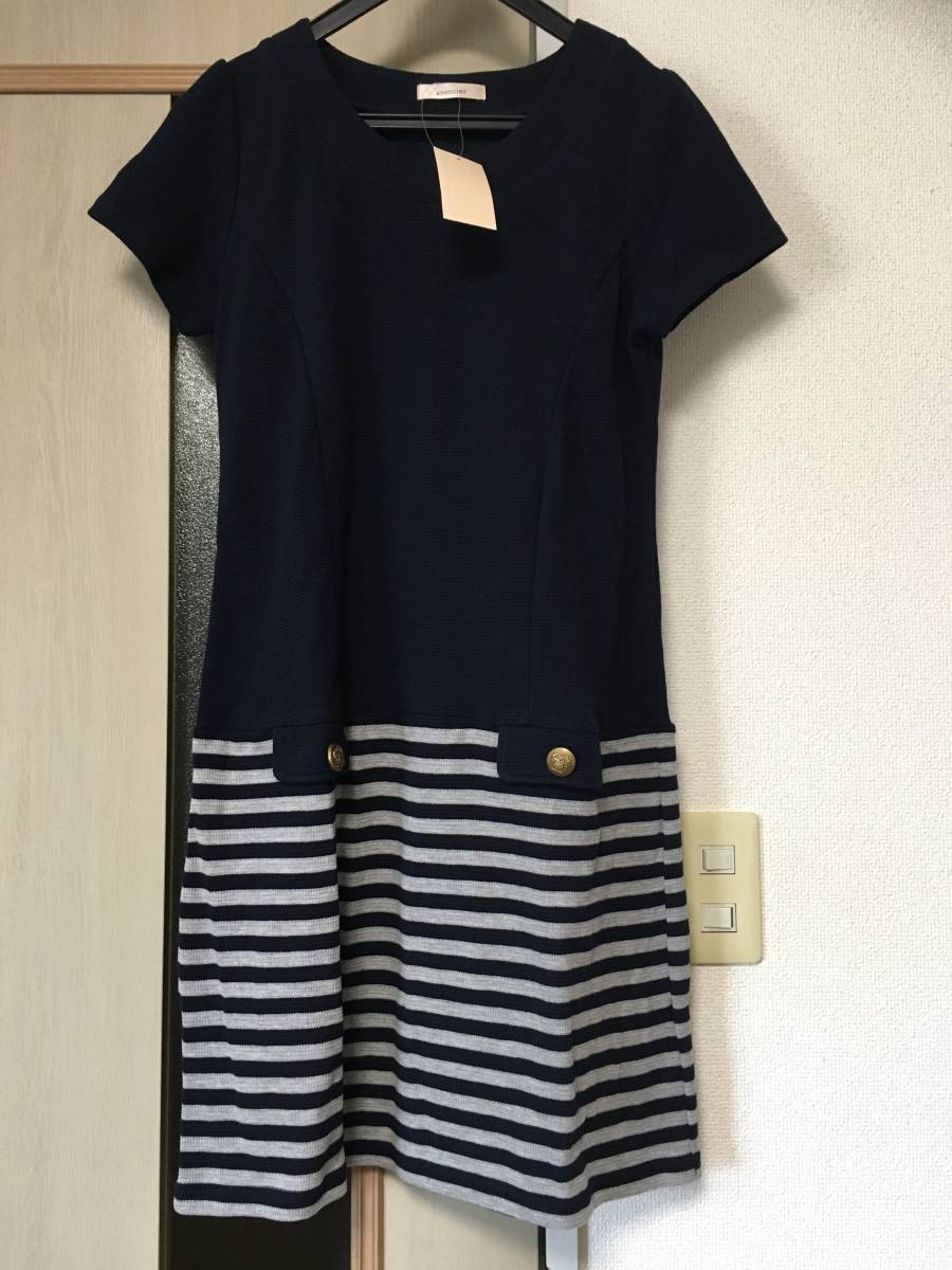 > ★未使用 タグ付き ワンピース チュニック 半袖 紺 ネイビー 切り替え アソシエ associer 金ボタン Mサイズ